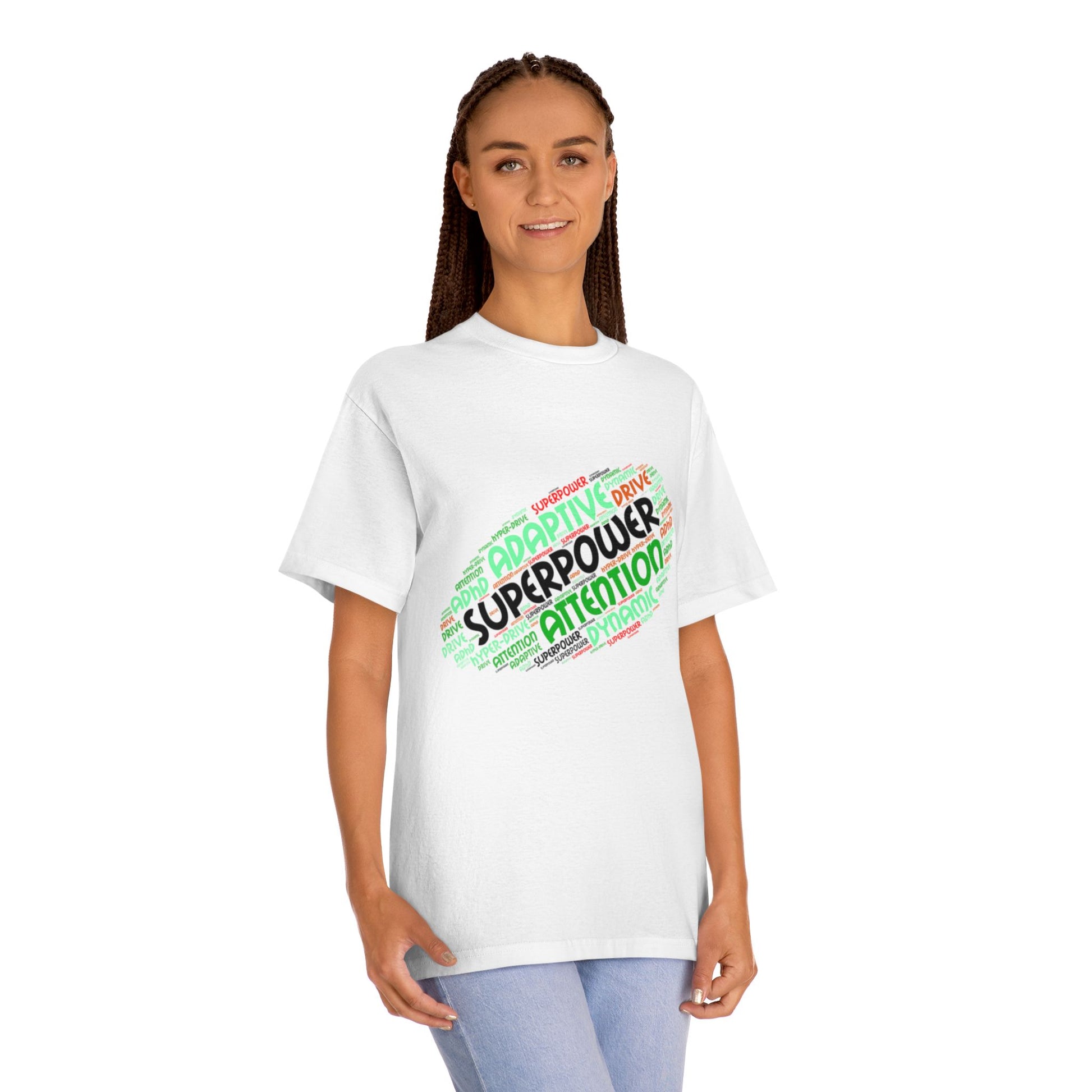 Perfect for those who embrace their ADHD as a unique strength, this tee is a celebration of the incredible, adaptive abilities that come with it. Whether you're tackling a million projects at once or hyper-focusing on the task at hand, this shirt reminds you and everyone else that ADHD is nothing short of a superpower.